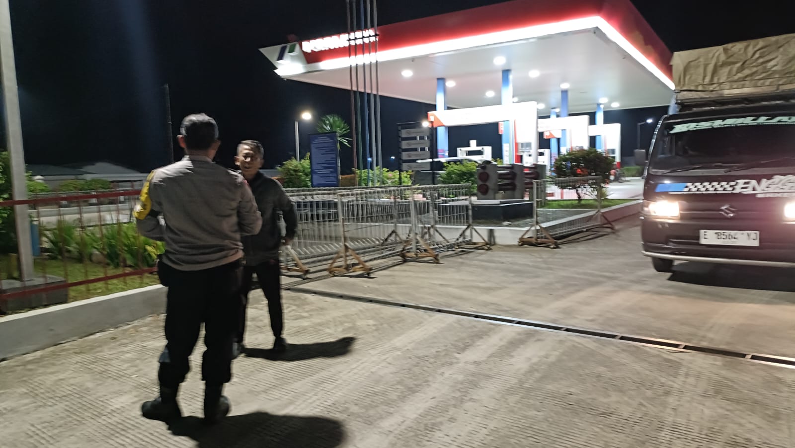 Cipta Kondisi, Bhabinkamtibmas Polsek Ciawigebang Gelar Patroli KRYD Malam di SPBU Cipicung