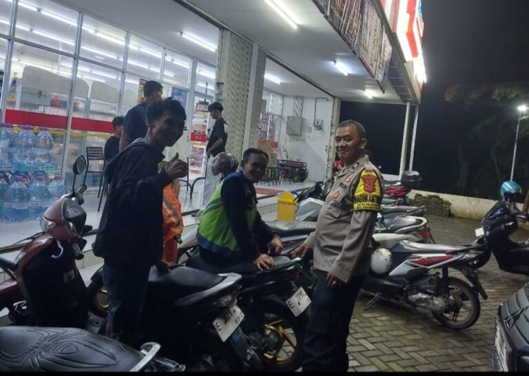 Patroli KRYD Malam Hari, Bhabinkamtibmas Polsek Luragung Sampaikan Himbauan kepada Tukang Parkir Minimarket