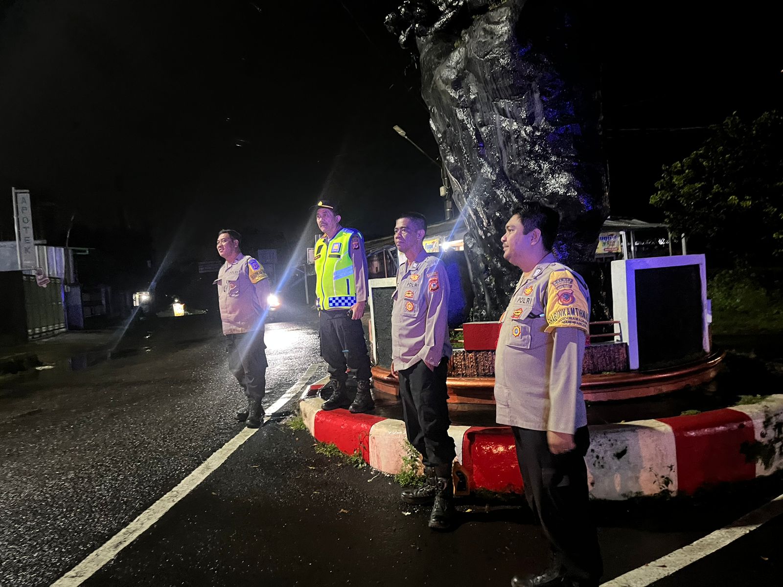 Polres Kuningan Polda Jabar – Hujan yang turun membasahi bumi Mandirancan seolah menjadi saksi bisu keteguhan hati para abdi negara dalam menjalankan tugasnya. Di bawah langit malam yang gelap, personil kepolisian tetap bergerak dinamis menyisir jalanan demi memastikan tidak ada ruang bagi mereka yang ingin mengganggu ketentraman warga.