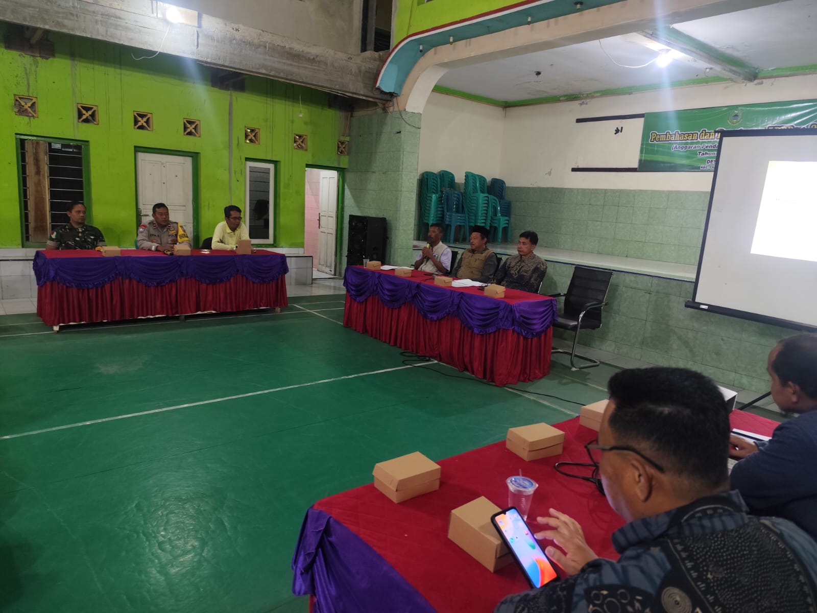 Rapat dihadiri oleh kepala desa, perangkat desa, unsur BPD, LPM, pendamping desa, kader posyandu, serta tokoh agama dan tokoh masyarakat.