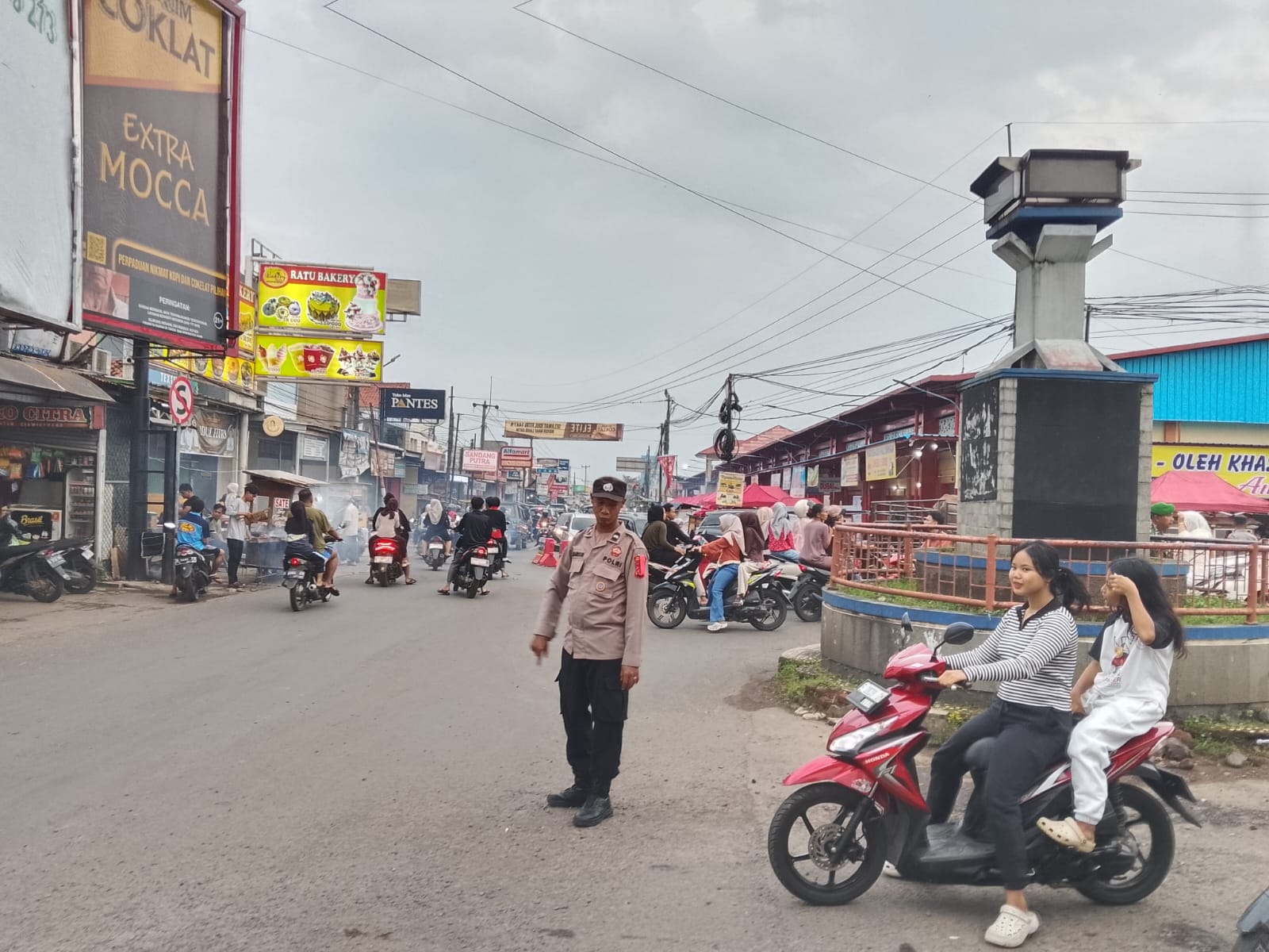 Personel Pos PAM Ciawigebang Ops Ketupat Lodaya 2026 Amankan dan Atur Lalu Lintas di Pasar Ciputat Pasca Idul Fitri 1447 H