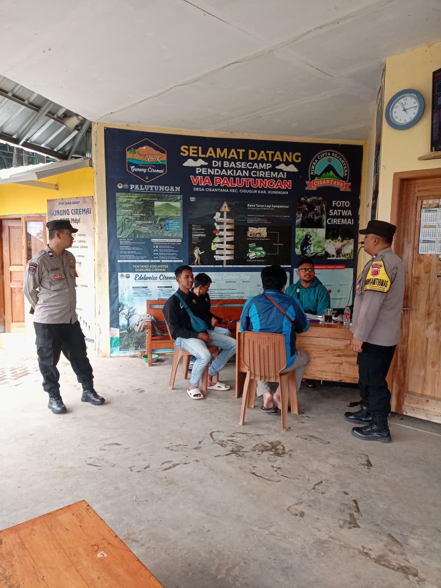 personil polsek cigugur patroli dialogis monitoring pendakian pos gunung ceremai, sosialisasi call centre polri