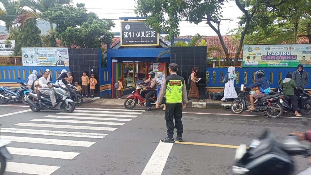Personil Polsek Kadugede melaksanakan kegiatan Police Hazard (PH) berupa pengaturan lalu linta s dan antisipasi gangguan kamtibmas di persimpangan jalan Terminal Kadugede dan di jln raya persimpangan desa babatan kec.kadugede Kecamatan Kadugede, di jln depan SDN Windujanten dan d jln deoan SMAN1 Kadugede kec.kadugede Kabupaten Kuningan, pada Rabu pagi (10/12/2025).