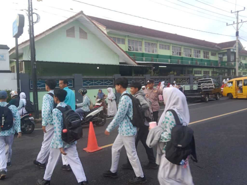 Personil Polsek Kadugede melaksanakan kegiatan Police Hazard (PH) berupa pengaturan lalu lintas dan antisipasi gangguan kamtibmas di persimpangan jalan Terminal Kadugede dan di jln raya persimpangan desa babatan kec.kadugede Kecamatan Kadugede, di jln depan SDN Windujanten dan d jln deoan SMAN1 Kadugede kec.kadugede Kabupaten Kuningan, pada Selasa pagi (03/02/2026).