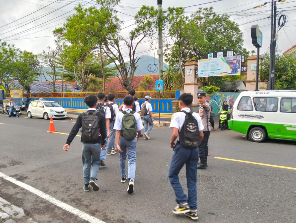 Optimalkan Pelayanan Pagi, Polsek Garawangi Amankan Jalur Sekolah dan Pasar