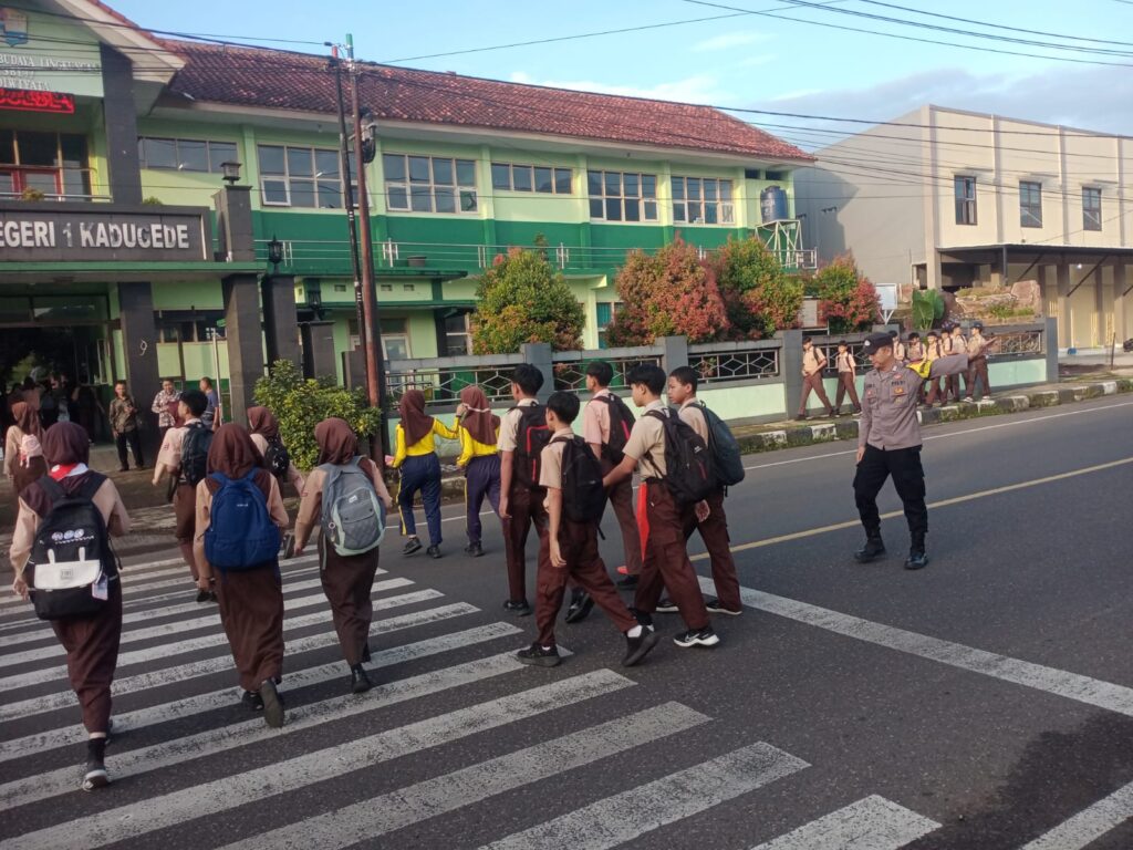 Wujudkan Kamseltibcarlantas, Polsek Kadugede Hadirkan Pelayanan Prima di Jalur Pendidikan dan Transportasi