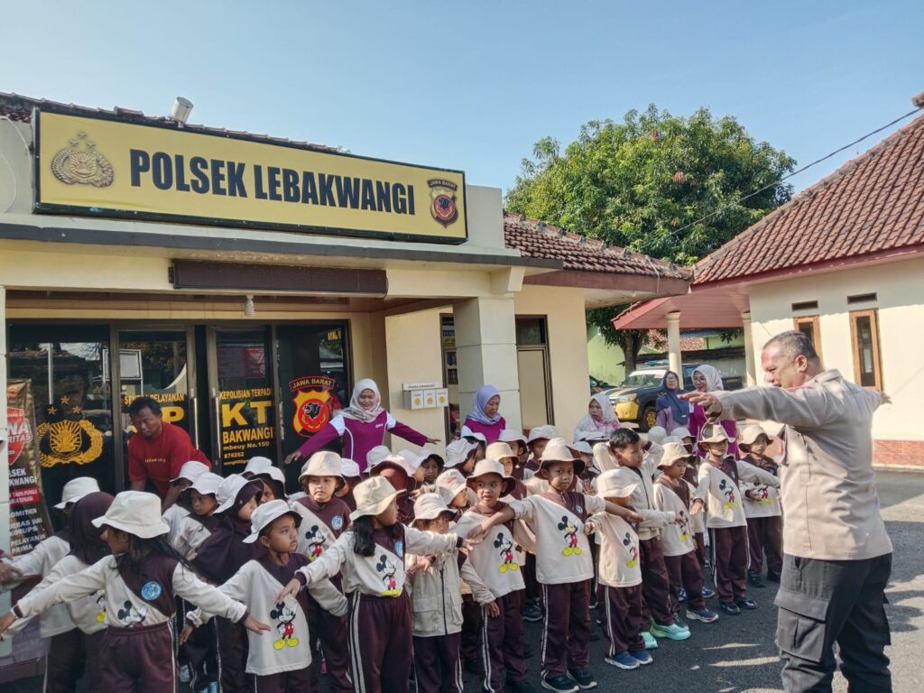 Lebakwangi – Kuningan – Keceriaan terpancar dari wajah anak-anak TK Negeri Cinagara saat mengikuti kegiatan edukatif di Polsek Lebakwangi dalam rangka outing class.