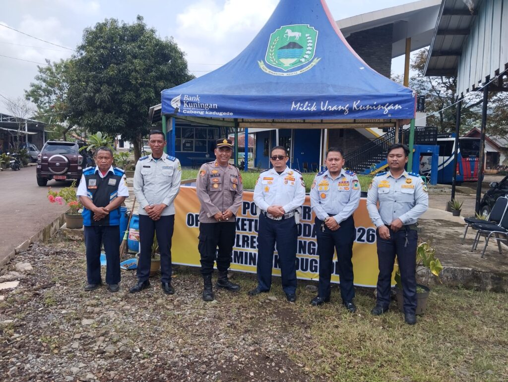 Kuningan – Dalam rangka menjaga kelancaran arus lalu lintas selama pelaksanaan Operasi Ketupat Lodaya 2026, personel kepolisian melaksanakan kegiatan pengaturan lalu lintas (gatur) di Pos Gatur Terminal Kadugede, Kabupaten Kuningan, Selasa (17/3/2026).