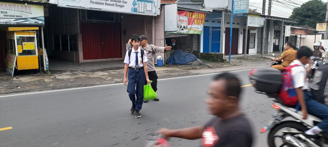 Selain itu, petugas membantu pejalan kaki menyeberang jalan dengan aman.