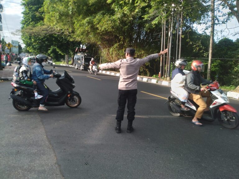 Pengaturan lalu lintas di pagi hari kembali dilaksanakan oleh jajaran Polsek Kramatmulya.
