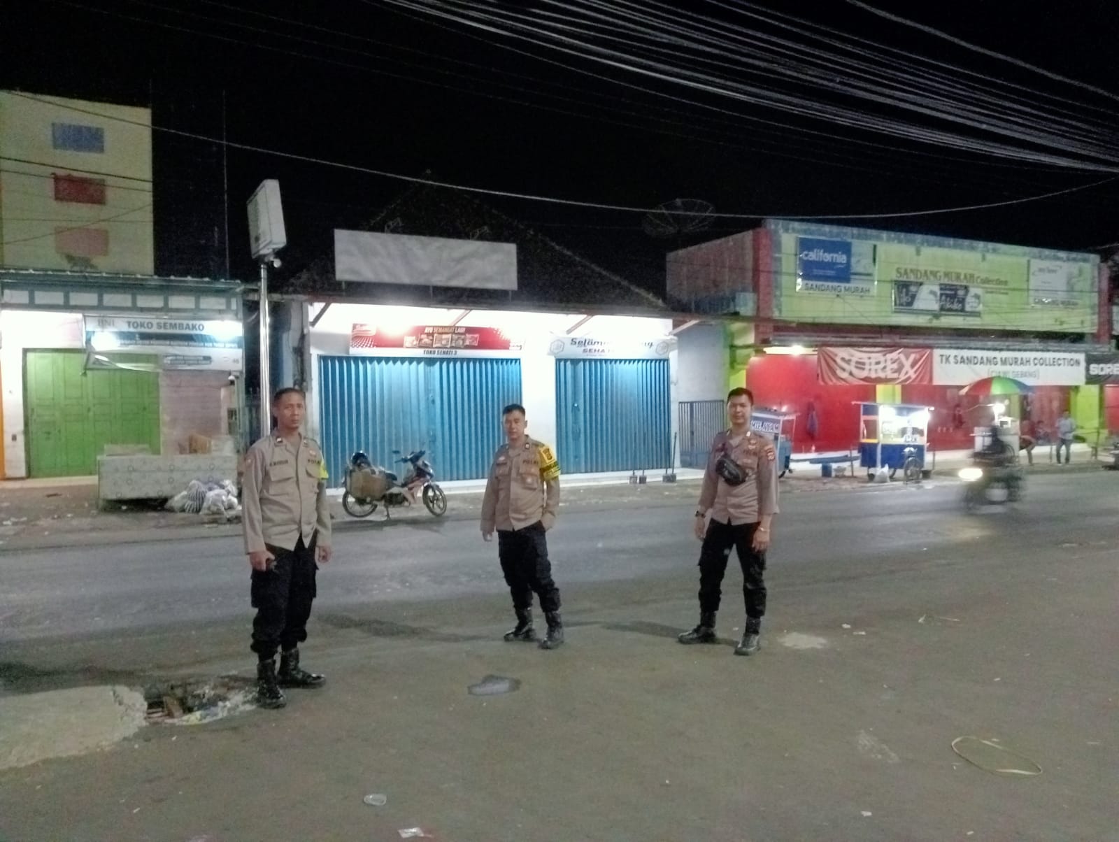 Polres Kuningan Polda Jabar – Anggota Polsek Ciawigebang Polres Kuningan Polda Jawa Barat, Aiptu Tarjono, Aipda Ahmad Mansur, dan Bripka Anggris melaksanakan kegiatan Patroli KRYD (Kegiatan Rutin Yang Ditingkatkan) pada malam hari dengan menyambangi pertokoan di Pasar Desa Ciputat, Kecamatan Ciawigebang, Kabupaten Kuningan, Sabtu (6/12).
