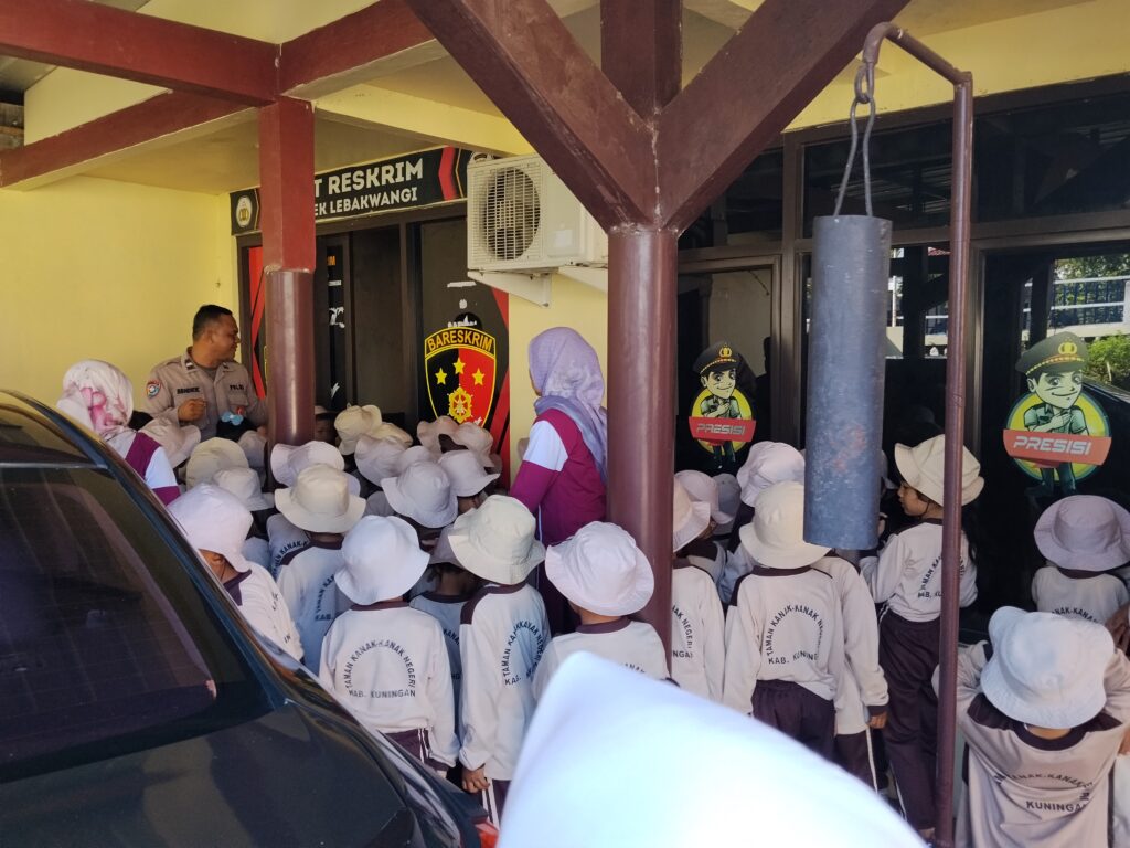 Lebakwangi – Suasana ceria dan penuh kehangatan terlihat di Mapolsek Lebakwangi saat menerima kunjungan edukatif dari siswa TK Negeri Cinagara dalam program outing class, Rabu (15/04/2026) pukul 07.30 WIB.