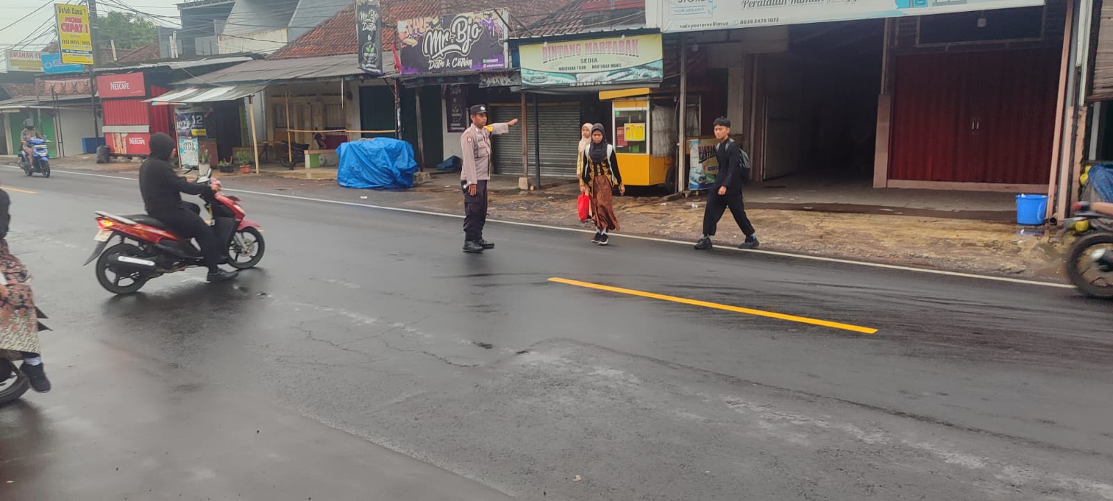 Begitu pula di Simpang Tiga SMP Negeri 1 Cilimus, Selasa (11/11/2025), di mana BRIPKA Nanang Kosim melaksanakan pengaturan lalu lintas.