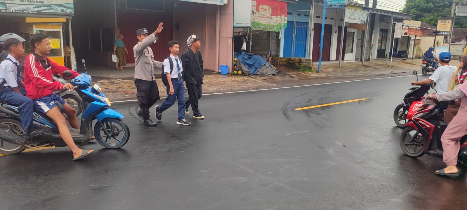 Ia juga membantu para pelajar dan masyarakat yang hendak menyeberang jalan.