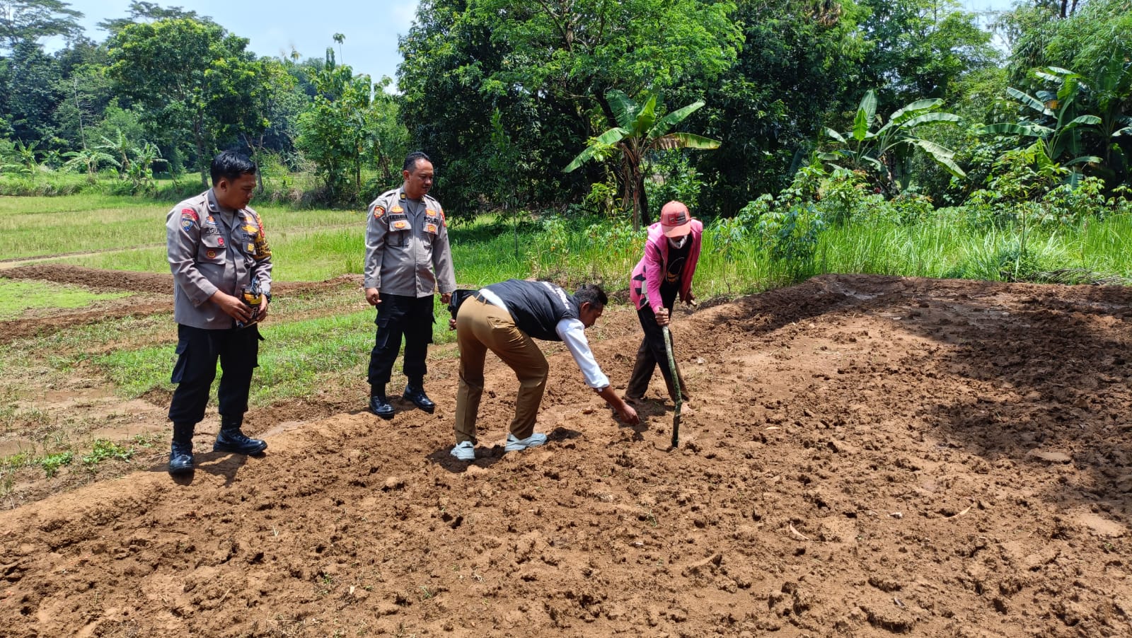 Polsek Ciawigebang dan Poktan Sumber Mukti II Desa Karamatmulya Optimalkan Lahan Tadah Hujan untuk Tanam Jagung Hibrida