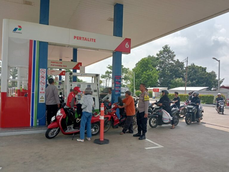 Jaga Kamtibmas, Polsek Ciawigebang Polres Kuningan Lakukan Patroli Siang Hari di SPBU Ciawigebang