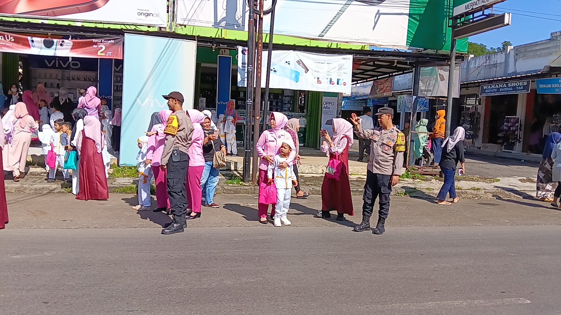 Personel Polsek Pancalang Laksanakan Pengaturan Lalu Lintas di Depan SMPN 1 Pancalang, Ciptakan Keamanan dan Kelancaran Arus Kendaraan Saat Jam Masuk Sekolah