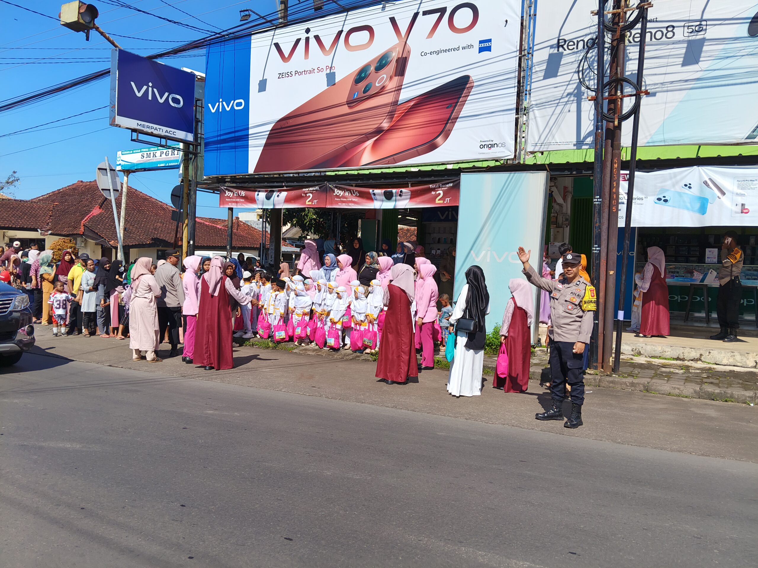 Polres Kuningan Polda Jabar – Anggota Polsek Ciawigebang Polres Kuningan Polda Jabar melaksanakan pengamanan kegiatan pembagian takjil kepada masyarakat yang dilaksanakan oleh Bhayangkari Cabang Kuningan bersama TK Bhayangkari Ciawigebang Kabupaten Kuningan. Kegiatan tersebut berlangsung di Jalan Raya Siliwangi Ciawigebang, Kabupaten Kuningan, pada bulan Ramadhan 1447 H / 2026 M, Kamis (12/3/2026).