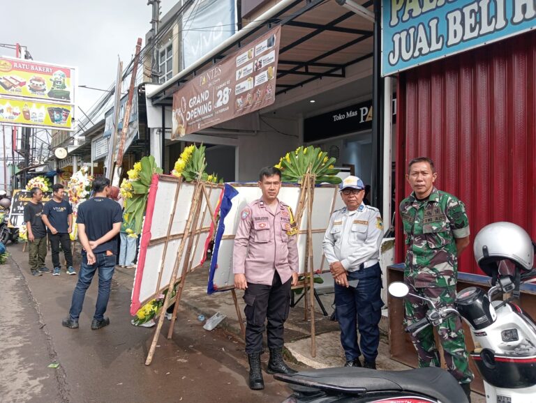 Polres Kuningan Polda Jabar – Bhabinkamtibmas Polsek Ciawigebang Polres Kuningan Polda Jabar Aiptu Tarjono bersama anggota Koramil Ciawigebang, Dishub Kabupaten Kuningan dan Pol PP Kecamatan Ciawigebang melaksanakan pengamanan kegiatan Grand Opening Toko Mas PANTES yang berlokasi di Desa Ciawigebang, Kecamatan Ciawigebang, Kabupaten Kuningan, Sabtu (7/2/2026).