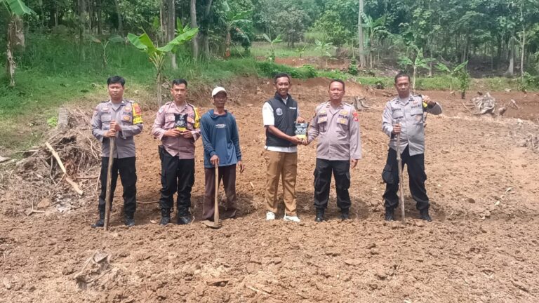 Polres Kuningan Polda Jabar – Polsek Ciawigebang Polres Kuningan Polda Jabar bersama Kelompok Tani (Poktan) Sumber Mukti II Desa Karamatmulya melaksanakan kegiatan penanaman jagung hibrida di lahan kering Blok Pasir Bentang RT 012 RW 004 Desa Karamatmulya, Kecamatan Ciawigebang, Kabupaten Kuningan, (3/11). Kegiatan ini dilakukan di atas lahan seluas kurang lebih 0,14 hektare sebagai bentuk dukungan terhadap program ketahanan pangan nasional.