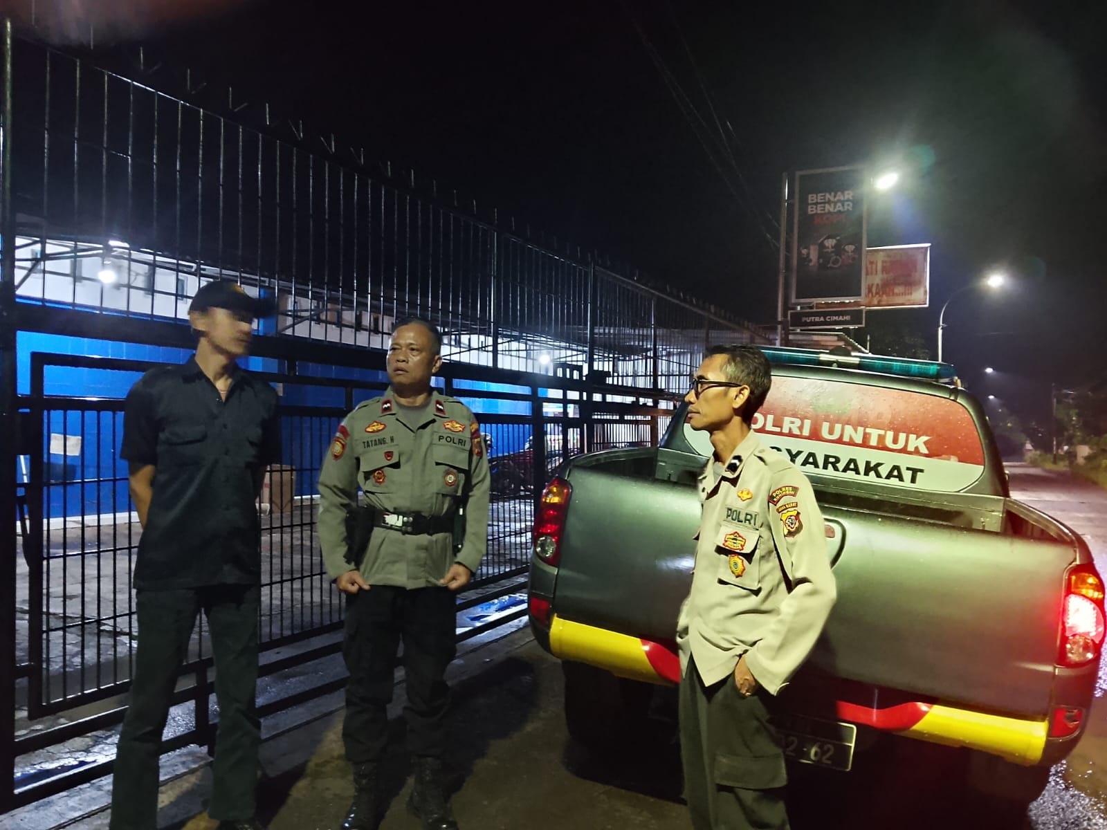 Aipda Tatang dan anggota Polsek Cidahu lainnya berdialog dengan satpam toko, membahas tentang situasi keamanan di lingkungan toko dan memberikan himbauan tentang pencegahan kejahatan. Mereka juga mengajak satpam toko untuk selalu waspada dan melaporkan kejadian yang mencurigakan kepada pihak kepolisian.