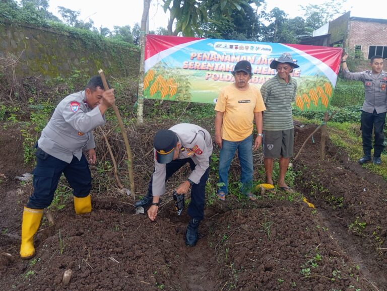 Setelah prosesi simbolis tersebut, seluruh peserta kegiatan kemudian bersama-sama melakukan penanaman bibit jagung di lahan yang telah disiapkan. Suasana kebersamaan terlihat jelas ketika aparat kepolisian, pemerintah desa, serta masyarakat bekerja bersama menanam bibit jagung.