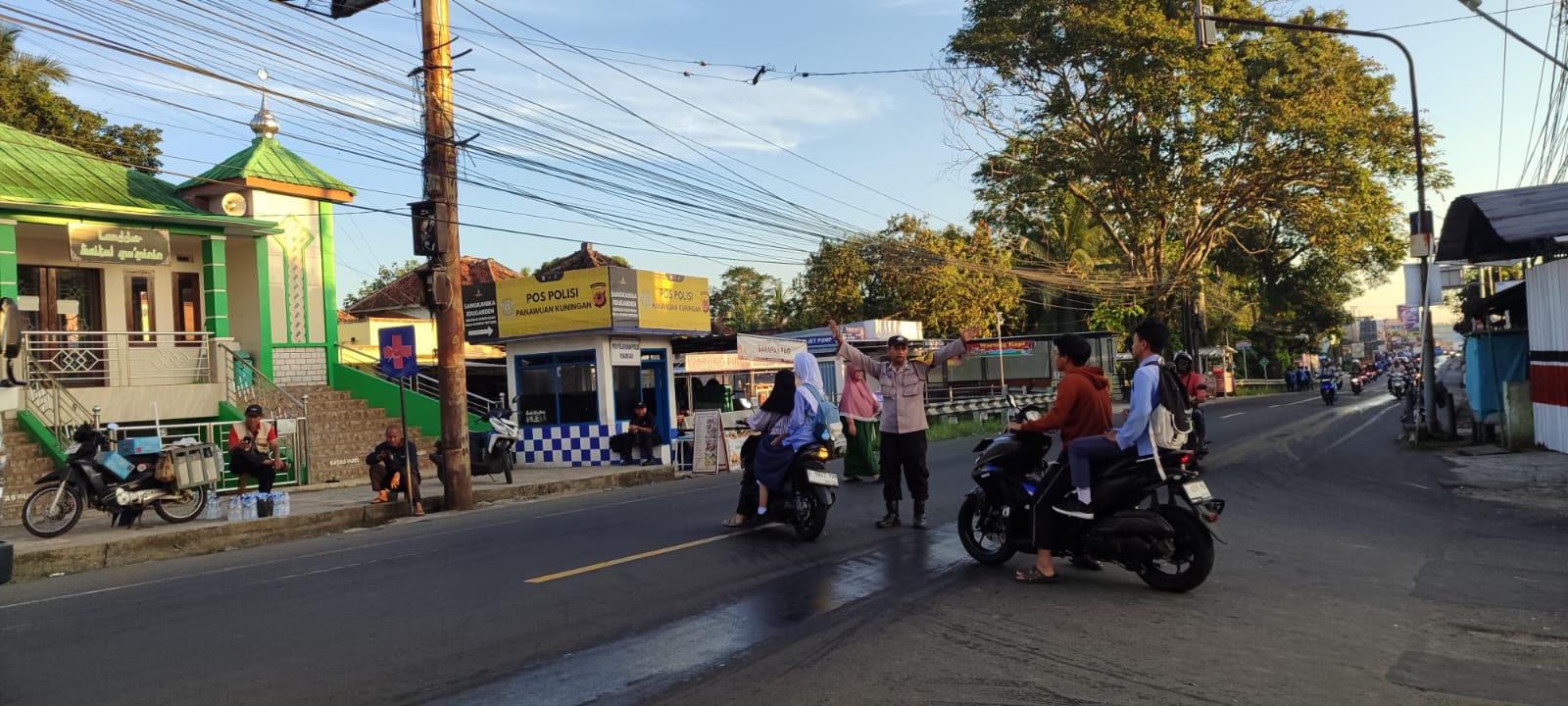 Polsek Cilimus melaksanakan kegiatan pengamanan dan pengaturan lalu lintas pada pagi hari di wilayah hukumnya.