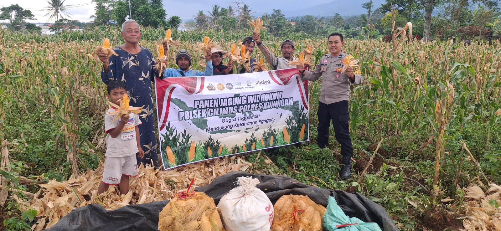 Polsek Cilimus Hadiri Panen Jagung Hibrida Bersama Petani di Bandorasa Kulon