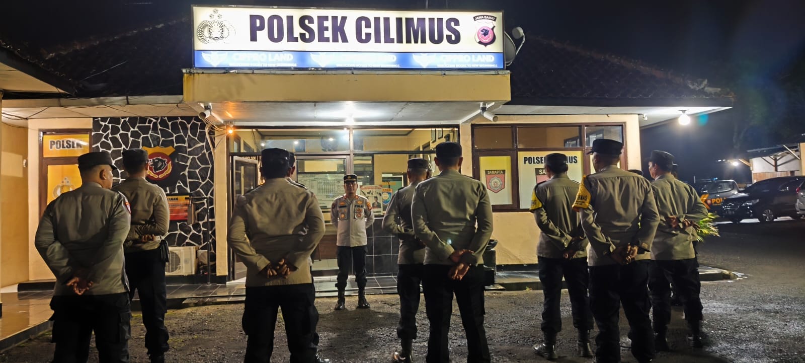Mapolsek Cilimus menjadi lokasi pelaksanaan Apel KRYD Gabungan Zona I Polres Kuningan pada Jumat malam, 13 Februari 2026.