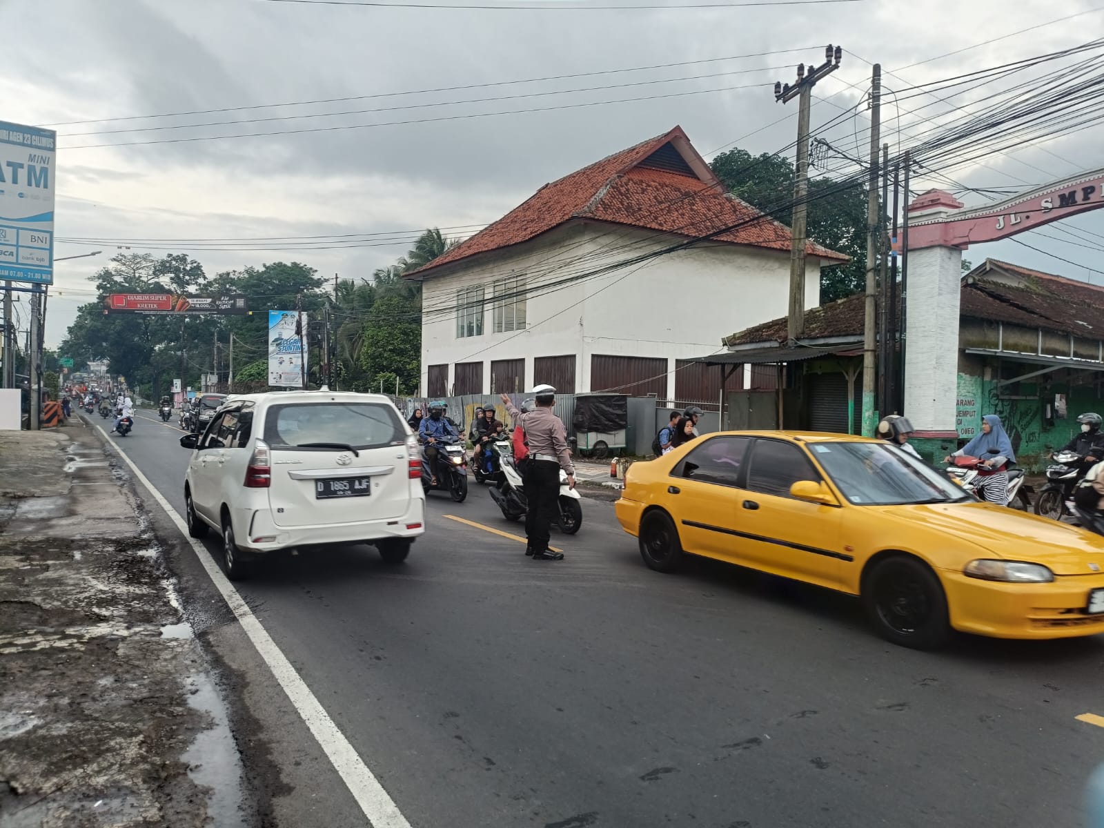 Dalam kegiatan tersebut, anggota melakukan pengaturan arus lalu lintas guna memastikan kelancaran pergerakan kendaraan.