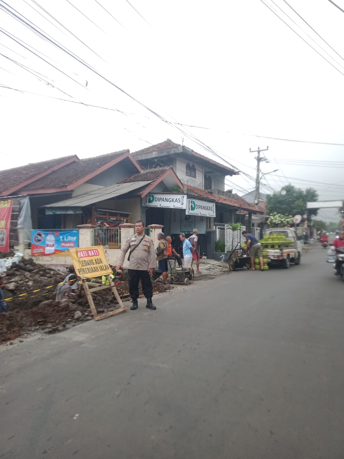 Proyek perbaikan parit di Desa Panawuan, Kecamatan Cigandamekar, memunculkan dampak kemacetan yang cukup dirasakan masyarakat. Menghadapi situasi itu, Polsek Cilimus mengerahkan Kasi Humas, Aipda Momon Usman Efendi, untuk mengawasi jalannya pembangunan.