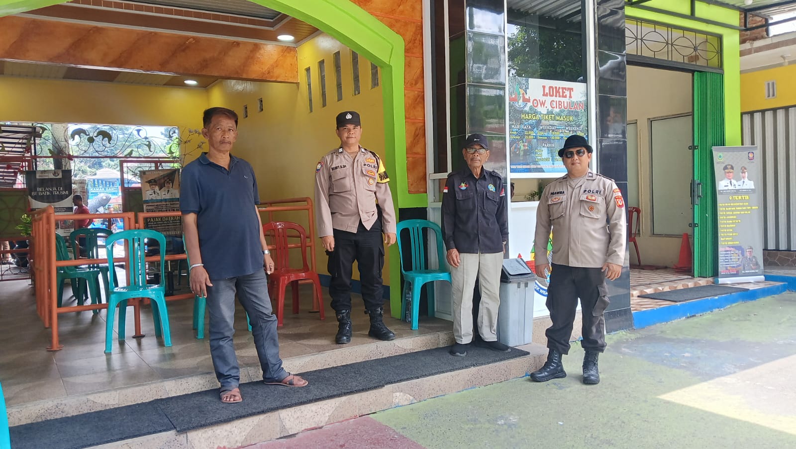 Aiptu Ghani P dan Aiptu Wiwit Budiarto berdialog dengan pengunjung dan pihak penjaga objek wisata untuk memberikan himbauan tentang pentingnya menjaga keamanan dan ketertiban. Mereka juga memantau situasi keamanan di sekitar objek wisata untuk mencegah terjadinya gangguan kamtibmas.