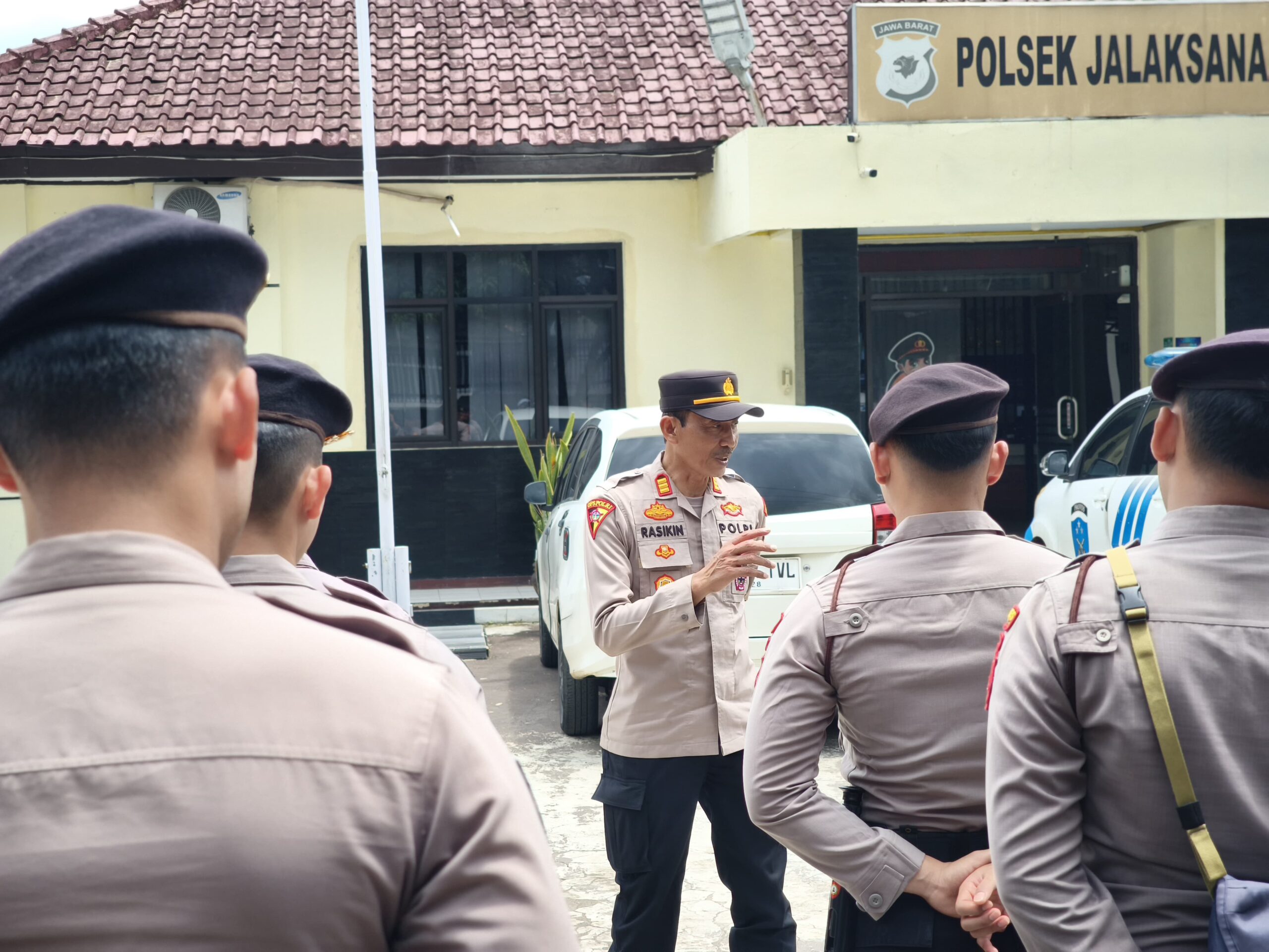 Polsek Jalaksana melaksanakan Apel Kesiapan Siaga Antisipasi Gangguan Kamtibmas kegiatan Jalsah Salanah JAI Kuningan, pada hari Minggu, 7 Desember 2025. Apel ini dipimpin oleh PS. Kabag Ops Polres Kuningan AKP Rasikin dan dihadiri oleh Kapolsek Jalaksana AKP Imam Rubianto, Paur Subagkerma IPTU Wahyu Untoro, Kanit Tipidter IPDA Eko Prasetyo,SH, KBO Sat Samapta IPDA Jaja Sukarja, dan Kanit Propam IPDA Yoes Rosadi.