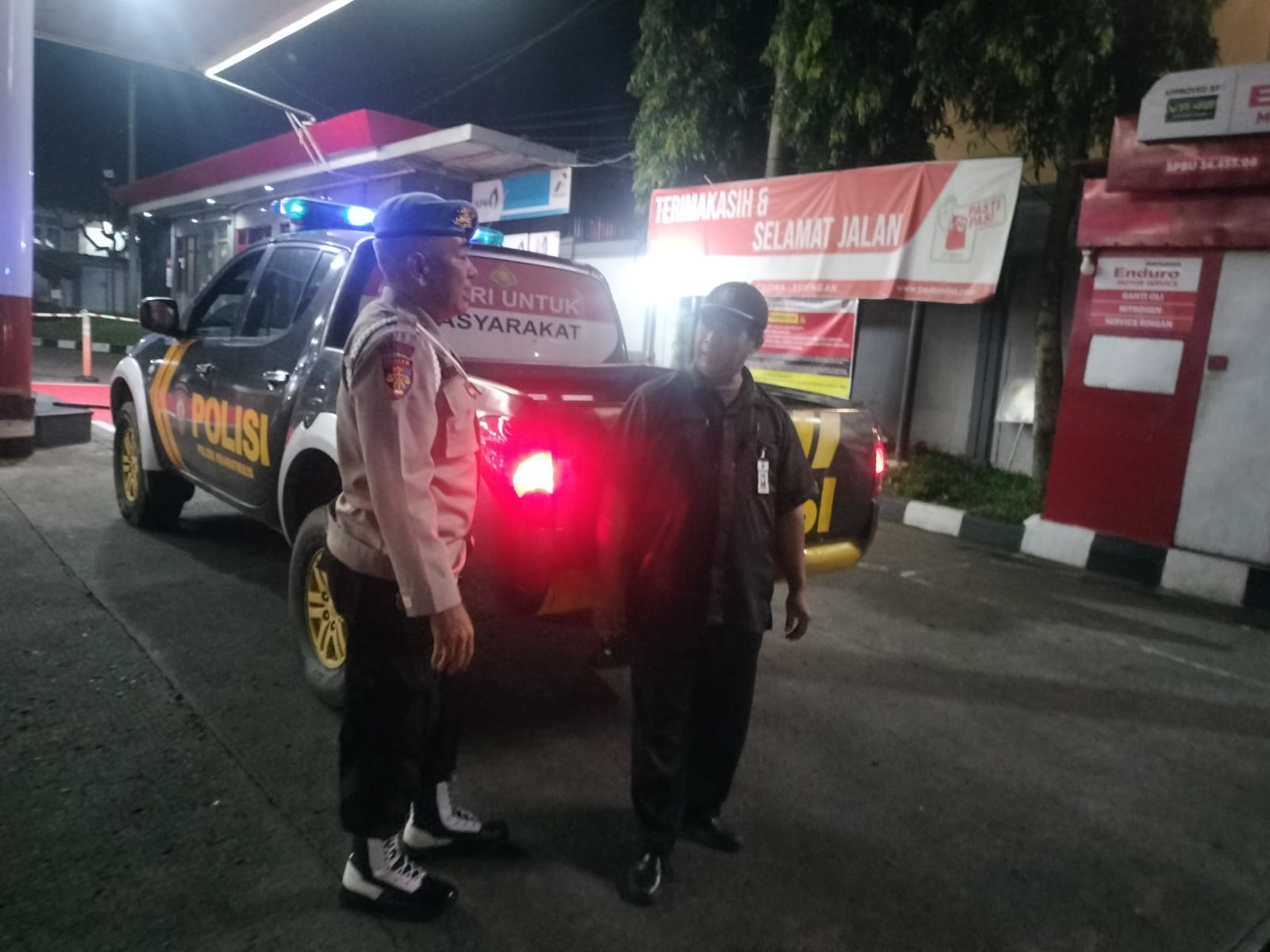 Polsek Kramatmulya Laksanakan Patroli Dialogis Malam Hari Antisipasi C3, jaga Kondusifitas di SPBU Desa Cilowa