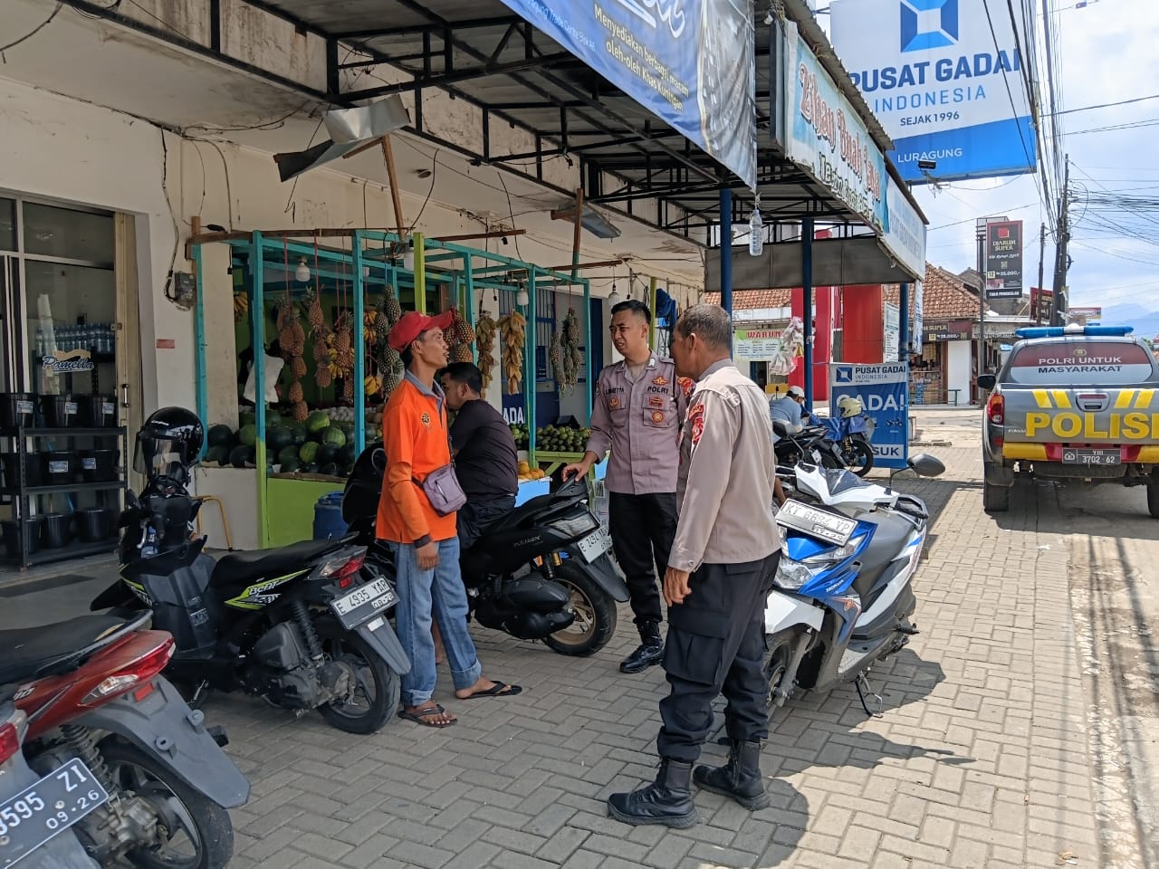POLRES KUNINGAN – Anggota Polsek Luragung Aiptu H yayat dan Brigpol Azis P, laksanakan Patroli siang dan sambangi Pertokoan Luragung dan berikan himbauan Kamtibmas, Senin (03/11/2025).