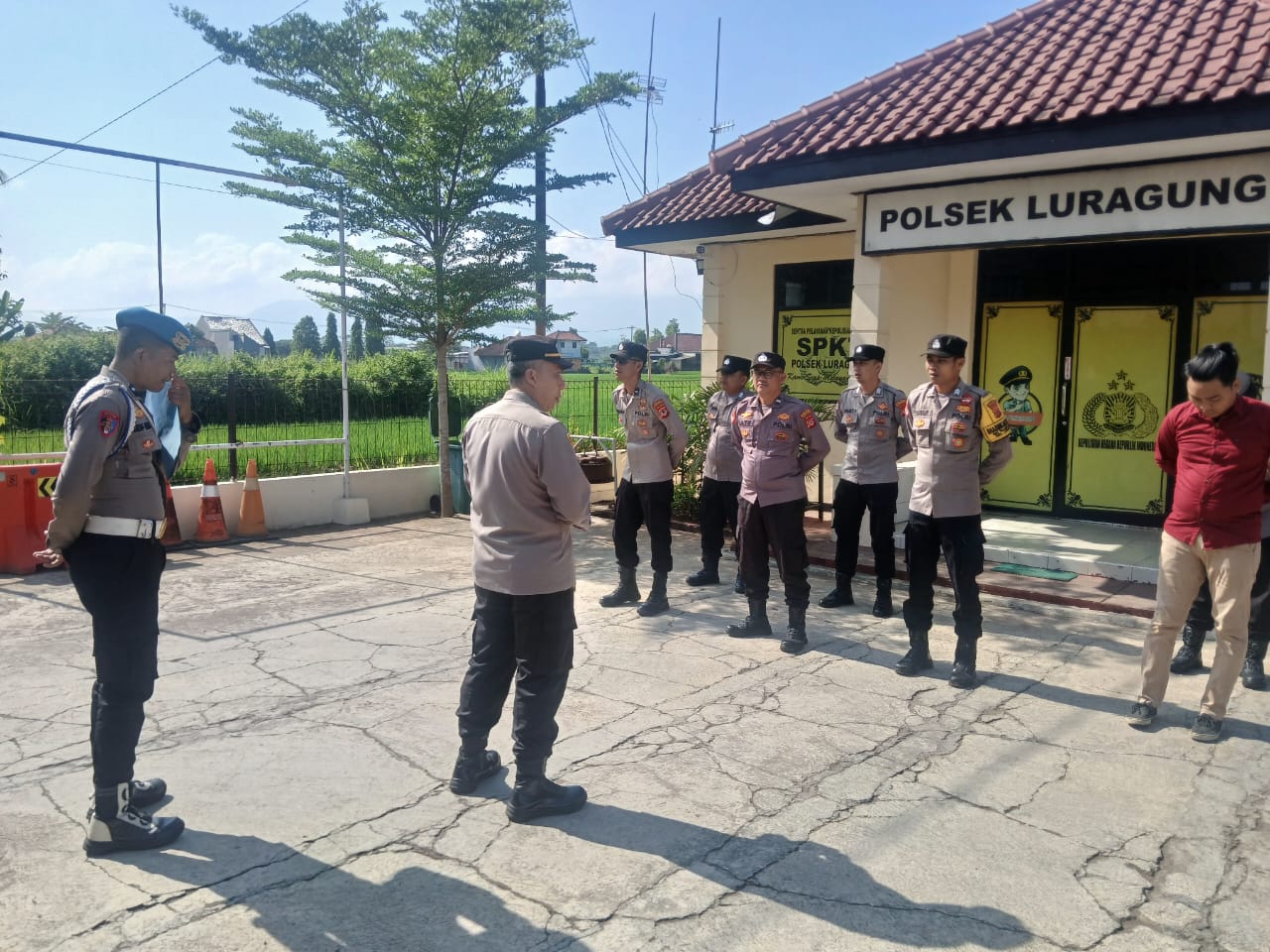 POLRES KUNINGAN – Anggota Polsek Luragung Polres Kuningan Polda Jabar Melaksanakan apel pagi dan Gaktibplin yang dipimpin langsung oleh Kapolsek Luragung Iptu Tofan Alamsyah, Sh, MH, dengan tujuan untuk memberikan semangat dan meningkatkan disiplin anggota, serta memberikan arahan terkait pentingnya pelayanan yang baik dan cepat secara profesional kepada masyarakat, Senin (13/10/2025).