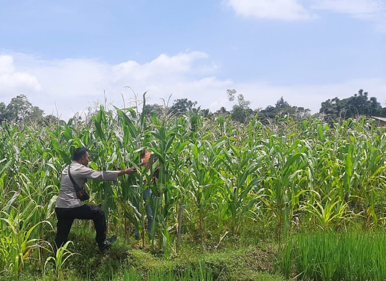 Polres Kuningan Polda Jabar – Dukung swasembada pangan, Bhabinkamtibmas Polsek Mandirancan Desa Kertawinangun, Aipda Budy Santoso, melakukan pengecekan ke lahan jagung hibrida yang ditanam bersama Kelompok Tani Sekar Maju. Kegiatan ini memastikan tanaman tumbuh sehat dan produktif.