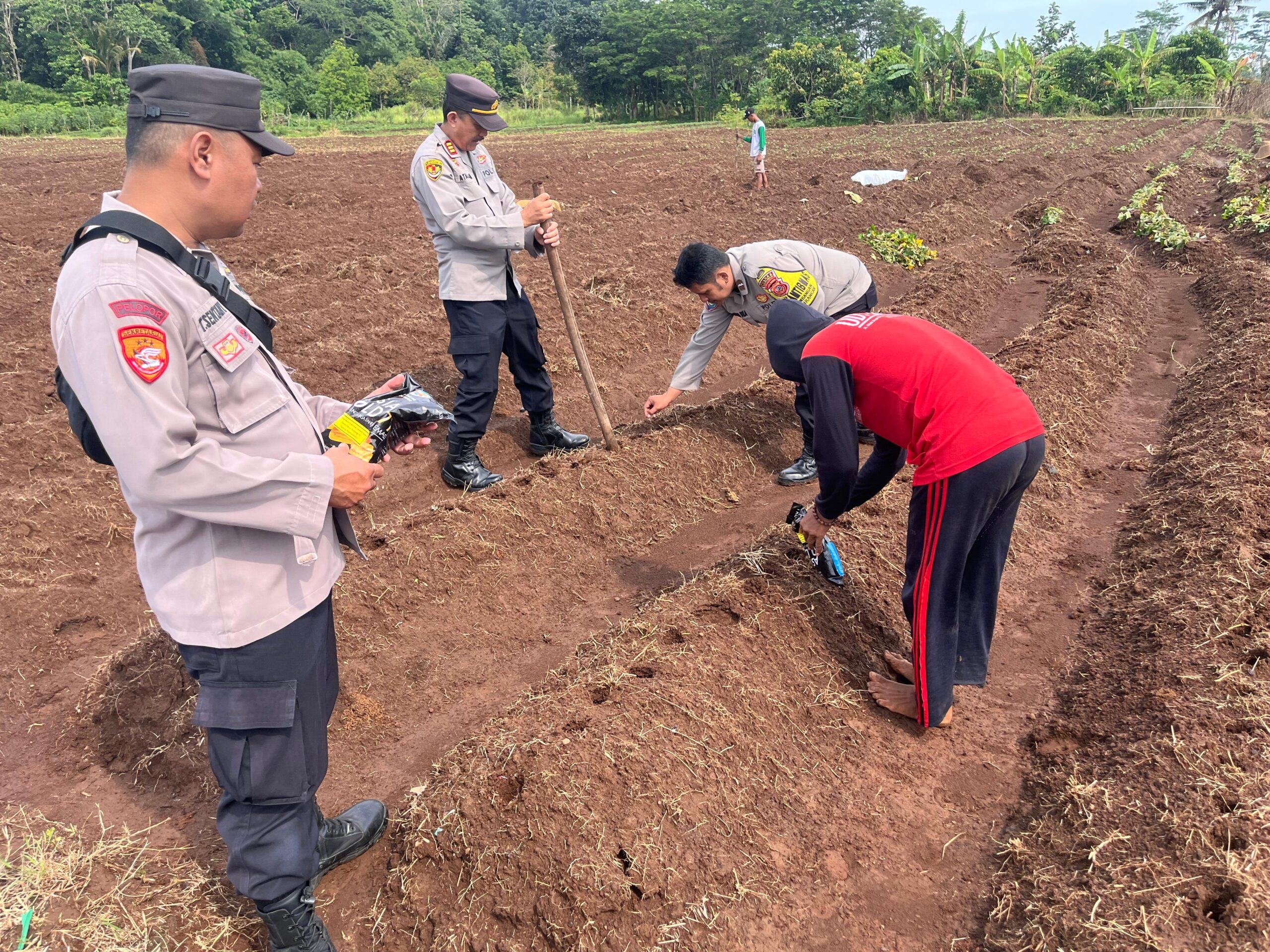 Dalam sambutannya, Kapolsek Mandirancan AKP Atang Mulyana, SE menyampaikan bahwa kegiatan ini merupakan wujud nyata kepedulian Polri terhadap masyarakat, khususnya dalam memperkuat ketahanan pangan di wilayah pedesaan. “Kami mendukung penuh program ketahanan pangan yang dicanangkan oleh Kapolres Kuningan AKBP Muhamad Ali Akbar, S.I.K., M.Si., dengan harapan kegiatan ini dapat mendorong masyarakat untuk memanfaatkan lahan kering agar lebih produktif,” ujarnya.