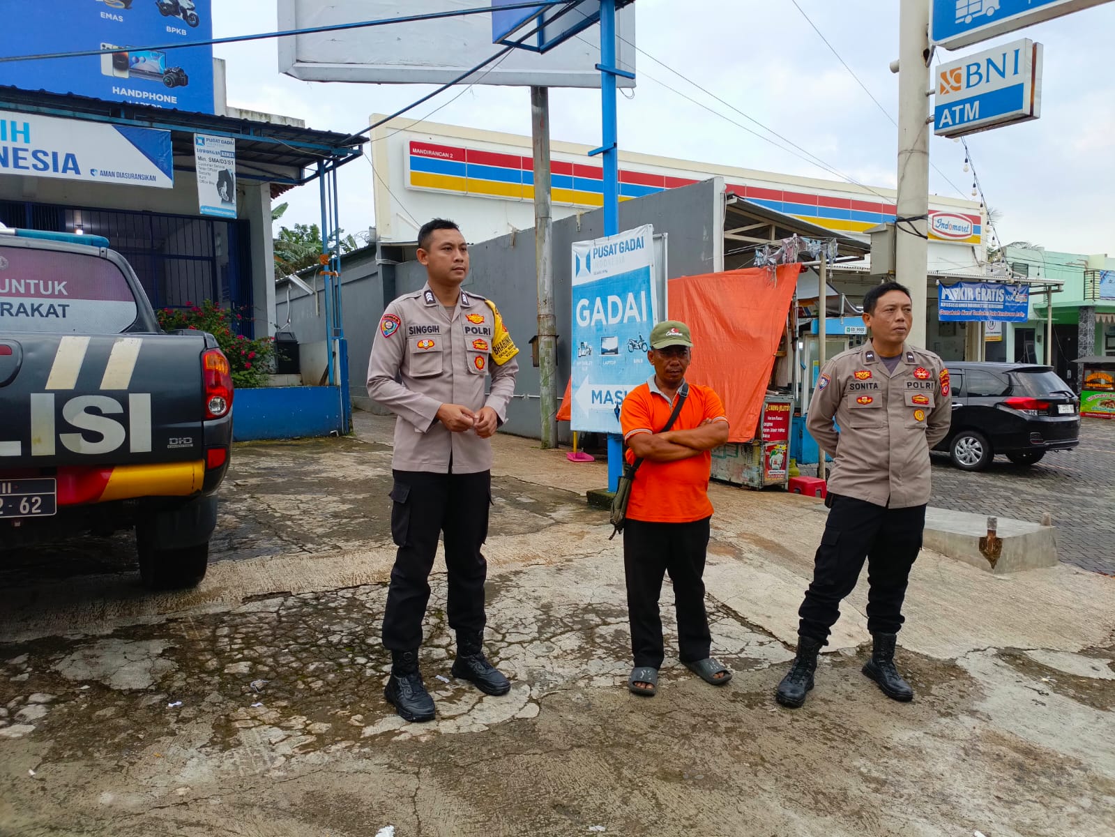 Petugas menyambangi juru parkir di depan Pusat Gadai Mandirancan untuk menyampaikan pesan-pesan kamtibmas.