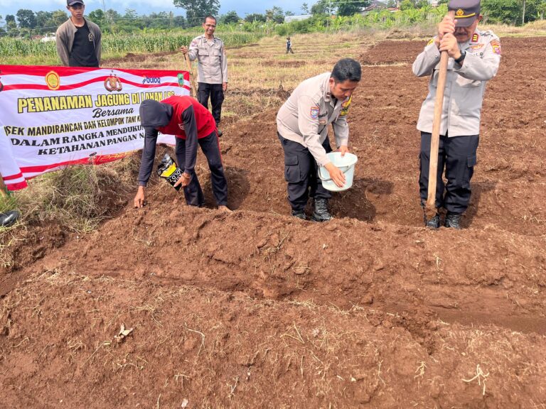Kuningan – Sebagai bentuk dukungan terhadap program pemerintah di bidang ketahanan pangan, Polsek Mandirancan Polres Kuningan Polda Jabar melaksanakan kegiatan penanaman jagung hibrida di lahan kering milik masyarakat. Kegiatan ini digelar pada Rabu (05/11/2025) di Dusun 2 Blok Kliwon, Desa Pakembangan, Kecamatan Mandirancan, dengan luas lahan mencapai 1 hektar.