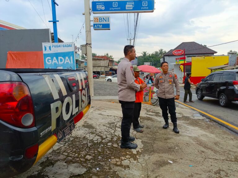Petugas menyambangi juru parkir di depan Pusat Gadai Mandirancan untuk berdialog sekaligus memantau situasi kamtibmas.