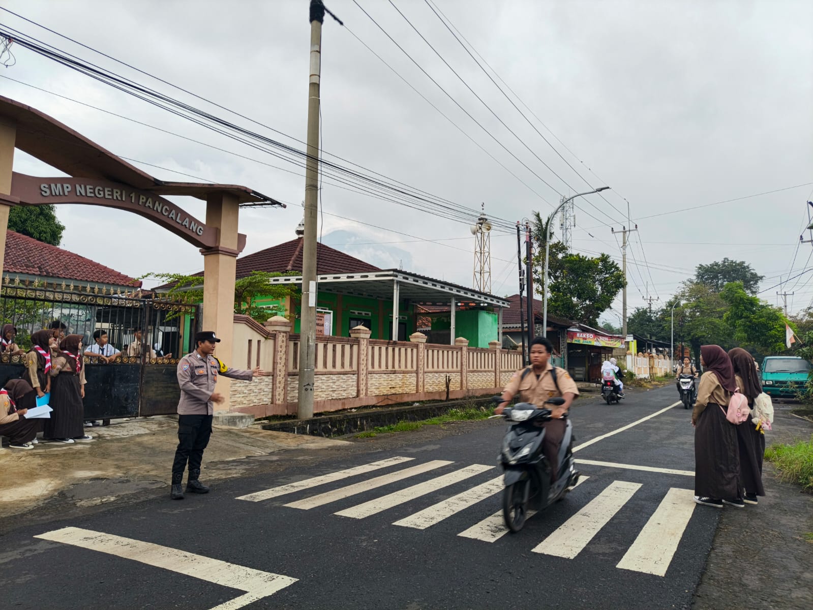 Polsek Pancalang Laksanakan PH Pagi di Depan SMPN 1 Pancalang, Pastikan Arus Lalu Lintas Lanca