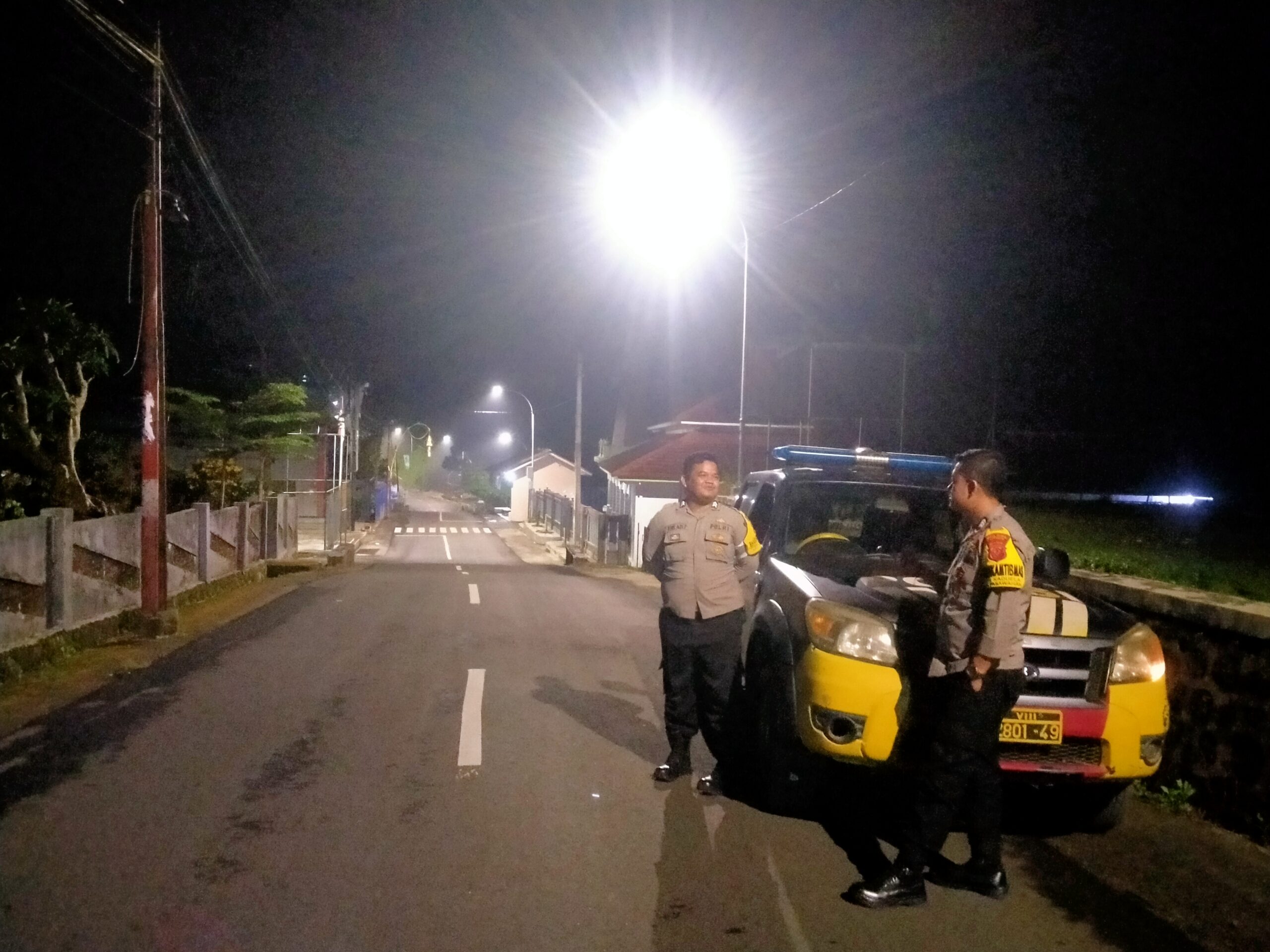 Patroli malam dilakukan menyusuri pemukiman, jalan desa, hingga area pertanian. Petugas memeriksa situasi sekitar dan memberikan imbauan kepada petani yang masih beraktivitas malam hari.