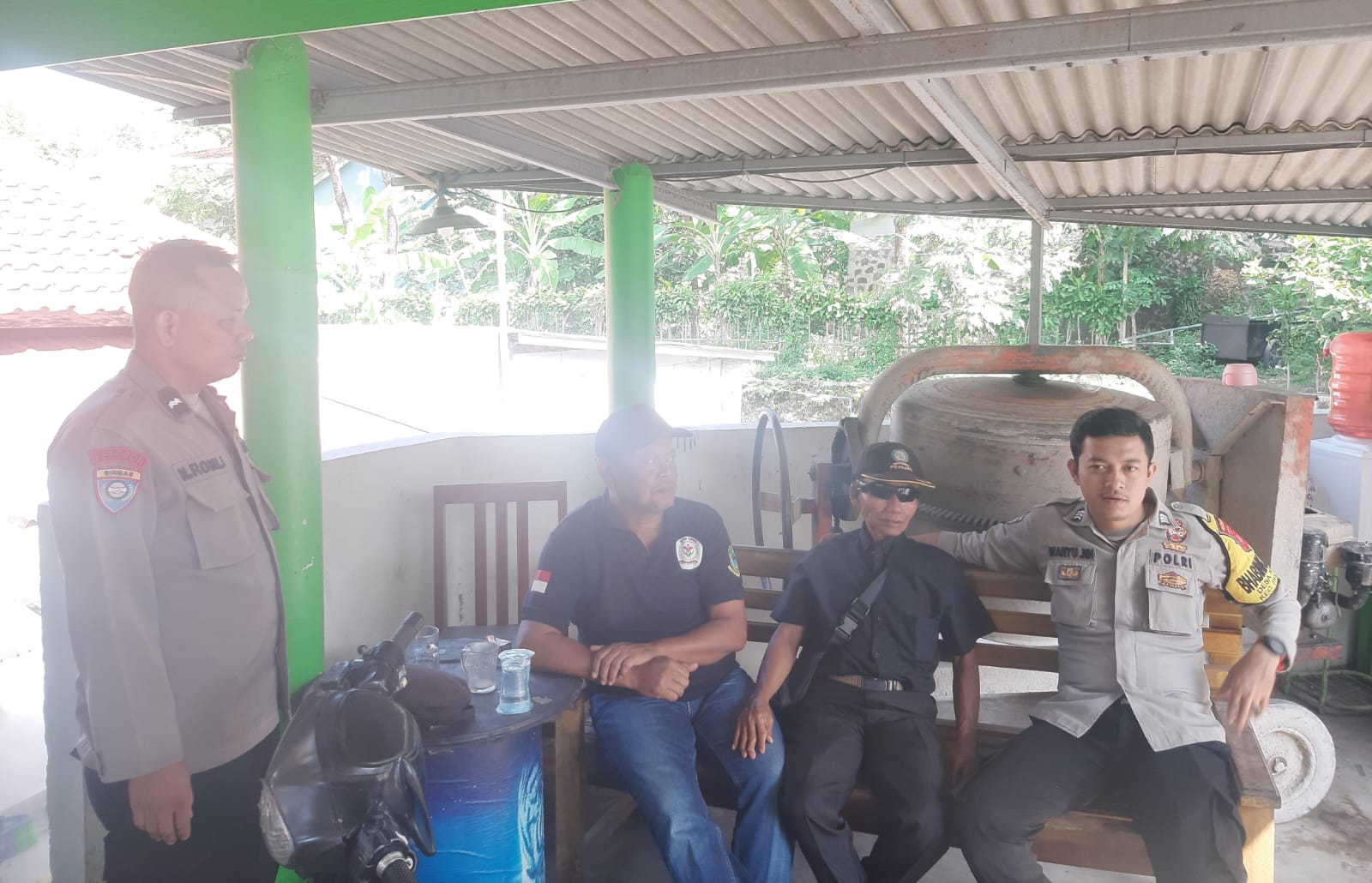 Personel Polsek Pasawahan menyampaikan pesan-pesan kamtibmas agar masyarakat meningkatkan kewaspadaan terhadap lingkungan sekitar, terutama menjelang malam hari.