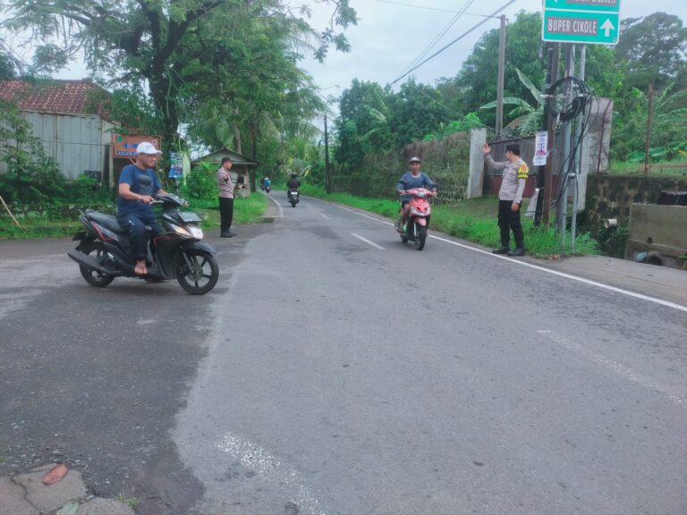 Kaduela – Rabu, 18 Desember 2025, Polsek Pasawahan melaksanakan kegiatan pengaturan dan penjagaan (PH) lalu lintas di pertigaan Desa Kaduela, Kecamatan Pasawahan, Kabupaten Kuningan. Kegiatan ini dilakukan guna memastikan kelancaran arus lalu lintas serta mencegah terjadinya kemacetan maupun hal-hal yang tidak diinginkan.