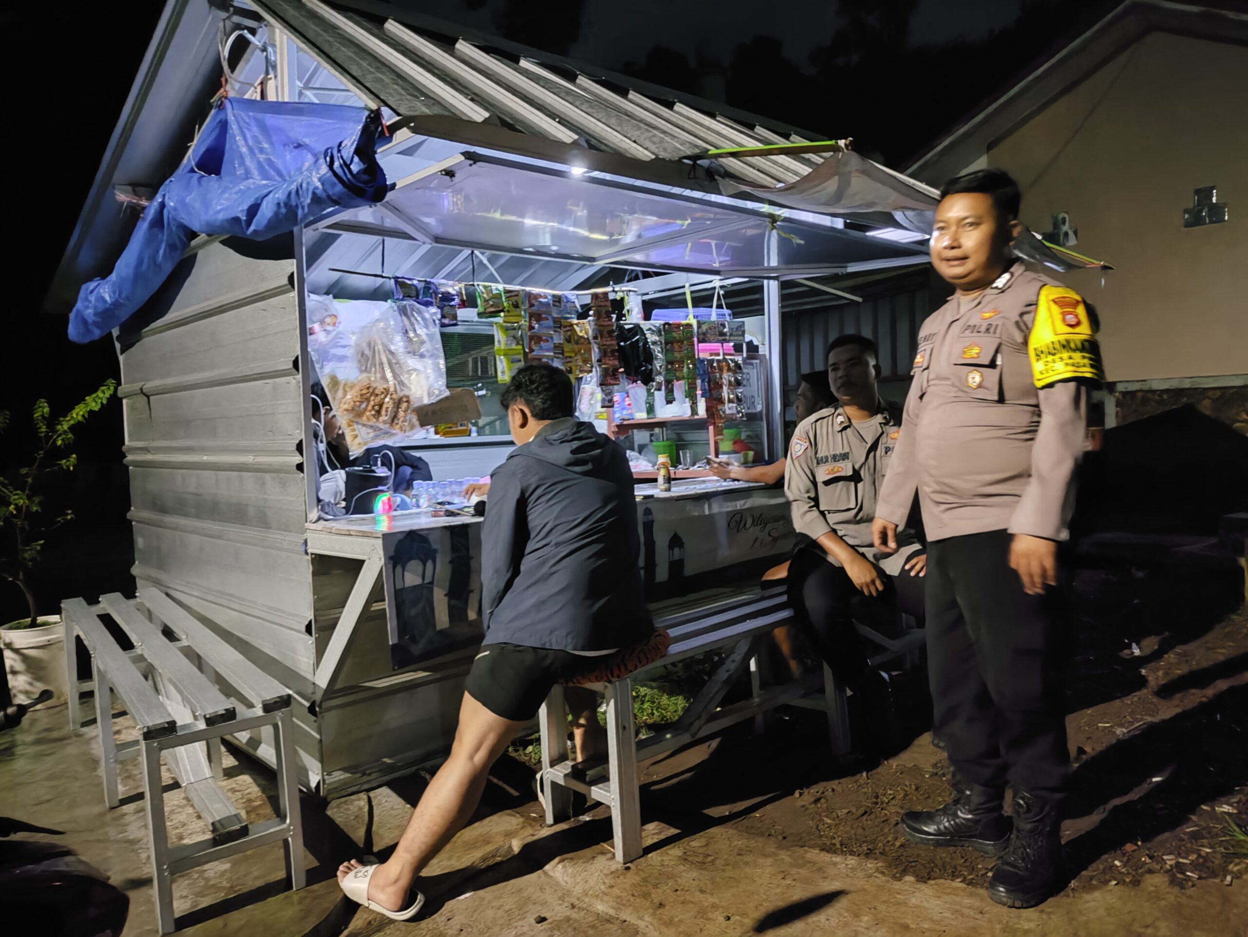 Dalam kesempatan tersebut, petugas berdialog secara humanis dengan para pemuda yang sedang nongkrong di warung, memberikan pesan agar tidak beraktivitas hingga larut malam demi menjaga keamanan lingkungan.