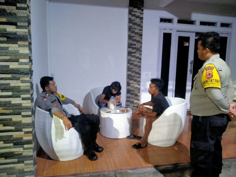 Selain berkunjung ke poskamling, petugas juga menyisir jalan utama dan gang kecil untuk memastikan tidak ada aktivitas mencurigakan. Suasana malam terpantau aman dan tertib.