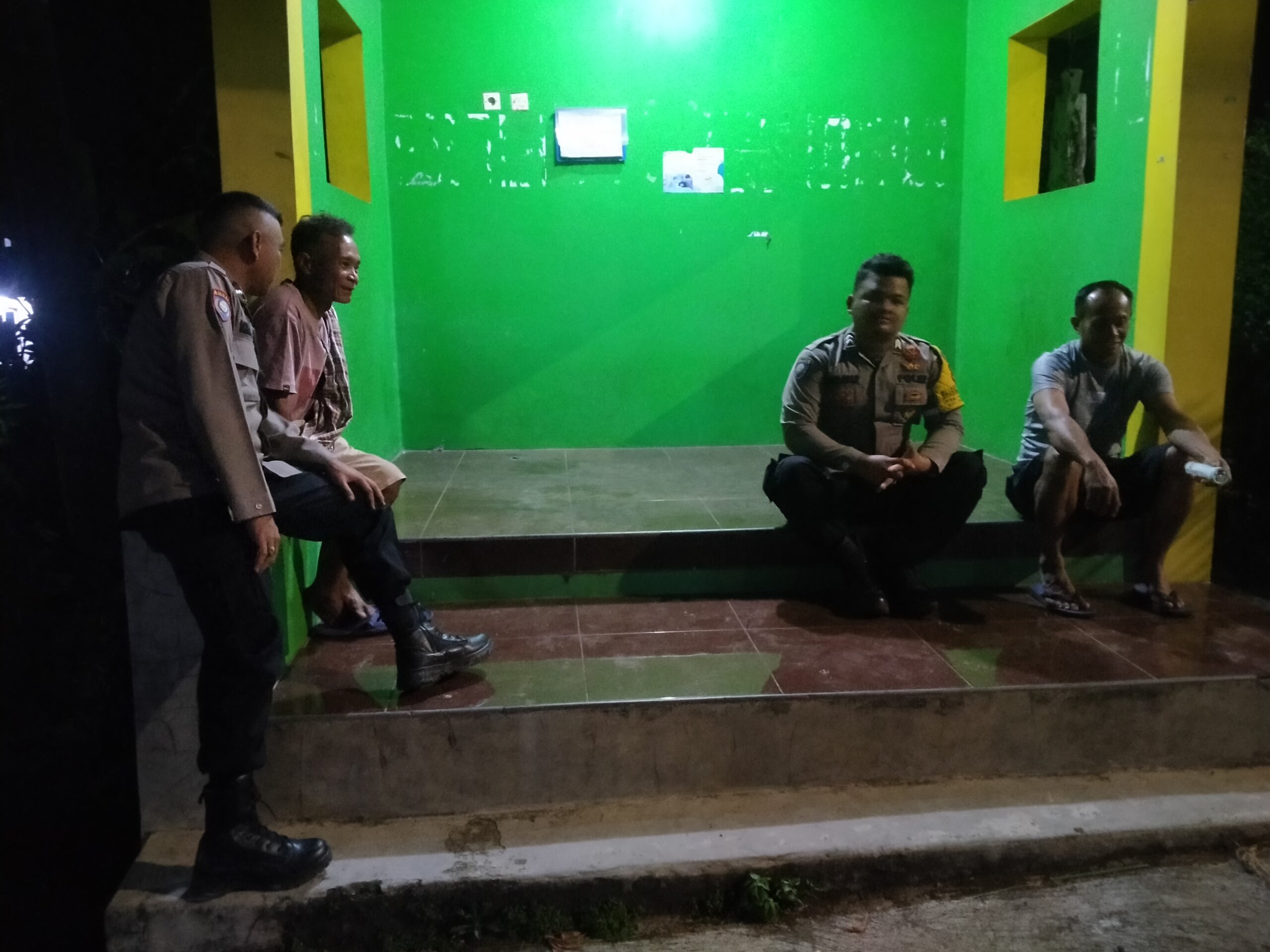 Dalam patroli kali ini, petugas menyambangi sejumlah warga yang tengah berkumpul di pos ronda dan berdialog secara humanis mengenai situasi kamtibmas.