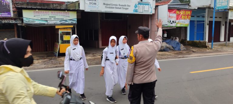 Pos Pam Bojong Polsek Cilimus melaksanakan pengaturan pagi untuk kelancaran arus lalu lintas.