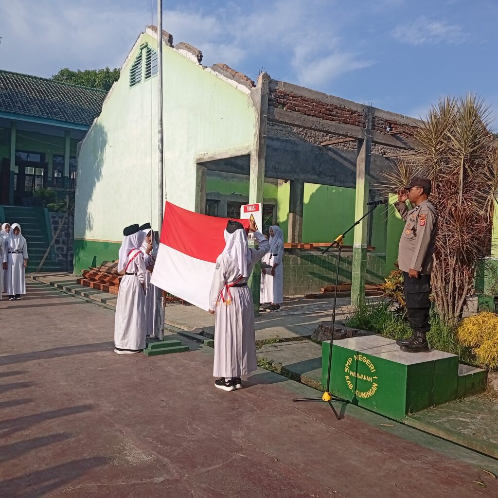 Ps Kanit binmas Polsek Pasawahan menjadi pembina upacara di sekolahan SMPN 1 Pasawahan